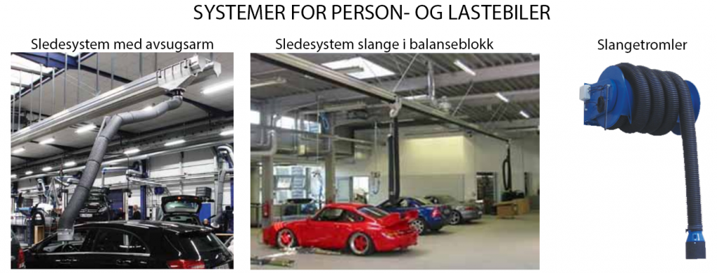 Eksosavsug for personbiler, lastebiler, traktorer m.m.